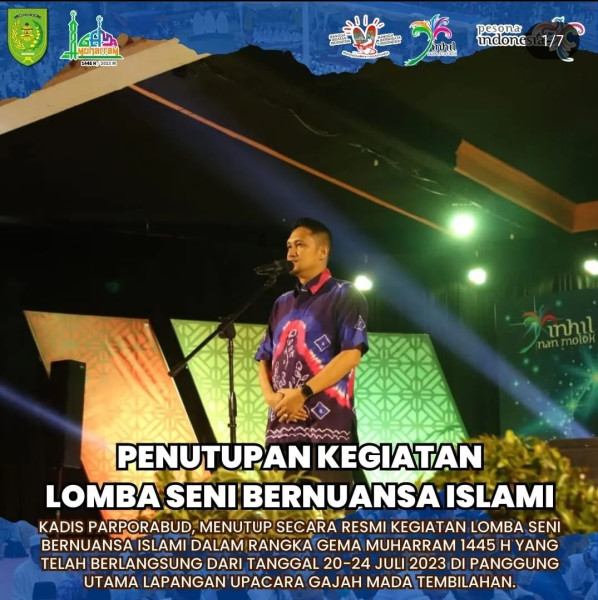 Perlombaan lomba Seni Bernuansa Islami ditutup langsung Kepala Disparporabud kabupaten Inhil Qudri Ramaputera yang juga dihadiri oleh Kabid Pariwisata beserta jajaran, dewan juri dan para peserta lomba seni bernuansa Islami.