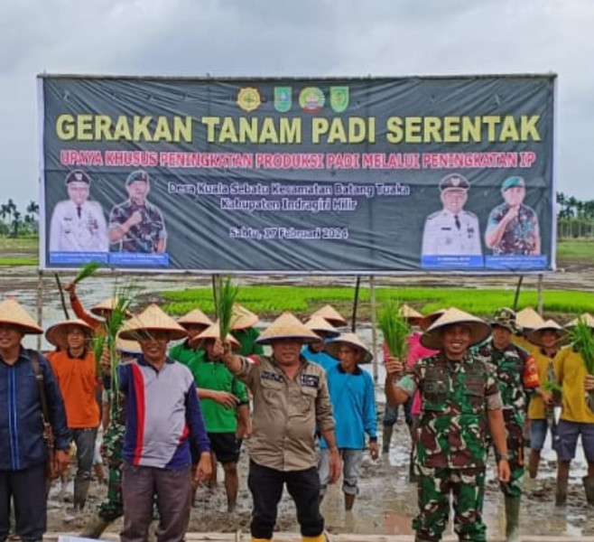 SIBERONE.COM - Dalam rangka mendukung Ketahanan Pangan Nasional (Hanpangan) di wilayah kabupaten Indragiri Hilir (Inhil) Kodim 0314/Inhil melaksanakan gerakan tanam Padi serentak yang dipusatkan di desa Kuala Sebatu, Kecamatan Batang Tuaka, Sabtu (17/2/2024).