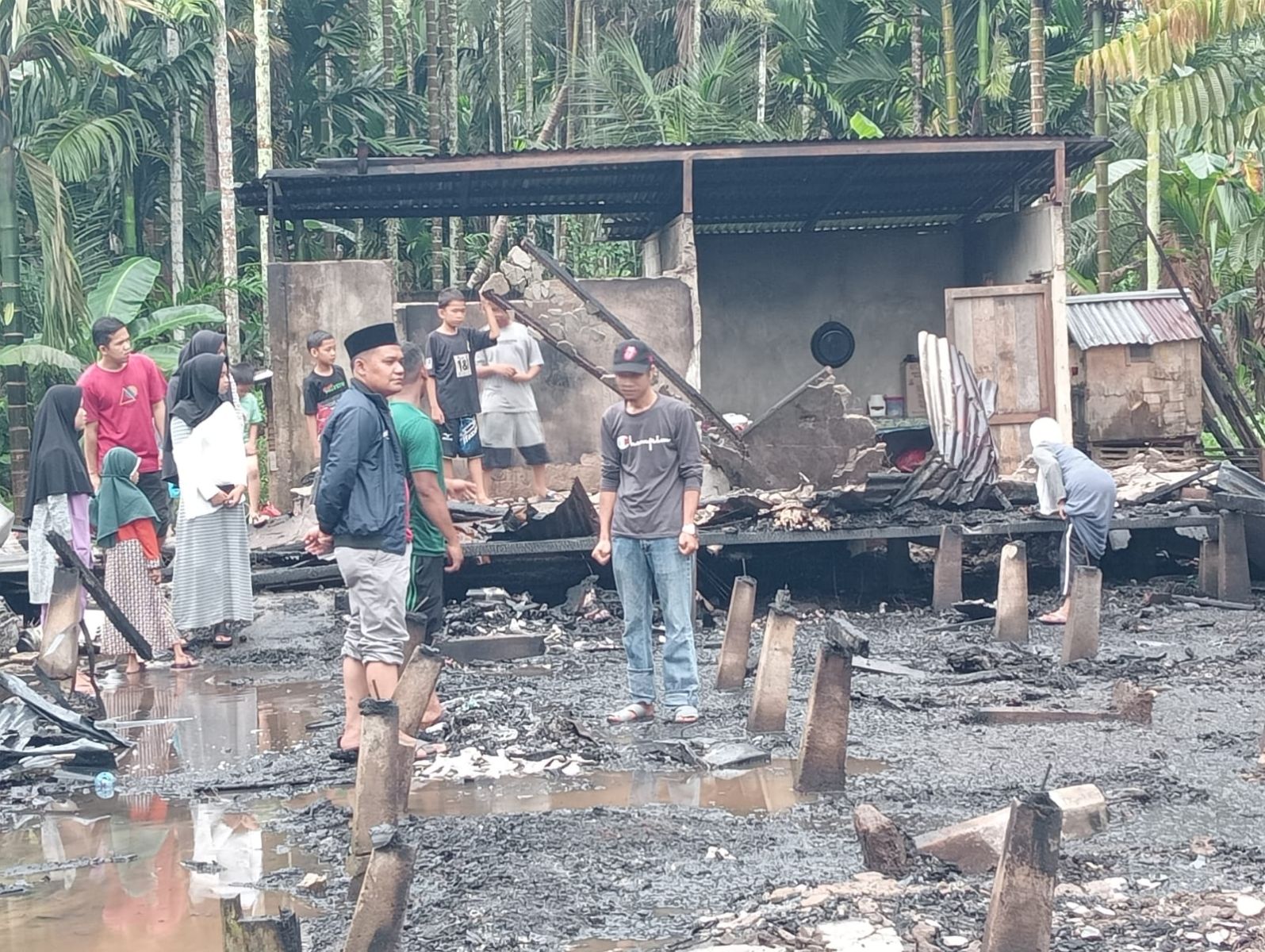 Kojim menyebut, saat dirinya meninjau langsung lokasi, terlihat rumah milik korban atas nama Ishak hanya tersisa sedikit di bagian belakang, dan dugaan sementara kebakaran disebabkan korsleting listrik.