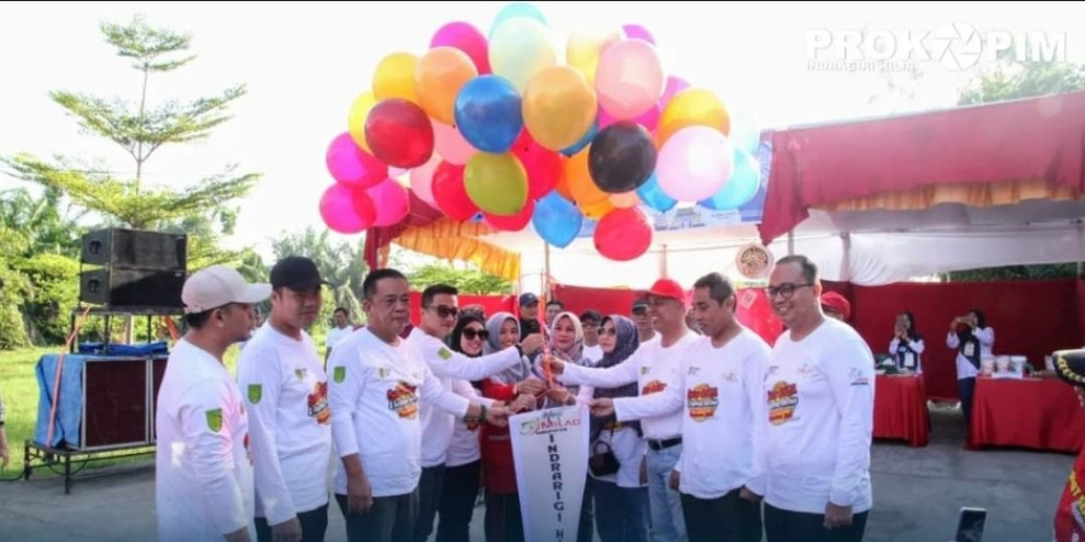Terlihat Wakil ketua DPRD Inhil bersama Forkopimda dan kepala OPD di lingkungan Pemkab Inhil, Penjabat Bupati H. Herman, SE, MT yang di dampingi Pj. Ketua TP PKK Inhil, Hj. Katerina Susanti Herman resmikan Pencanangan Milad Kabupaten Indragiri Hilir ke-59 Tahun 2024 yang di tandai dengan pelepasan balon dan pelepasan lomba gerak jalan santai oleh Pj. Bupati beserta unsur Forkopimda dan pj. Ketua TP PKK Inhil.
