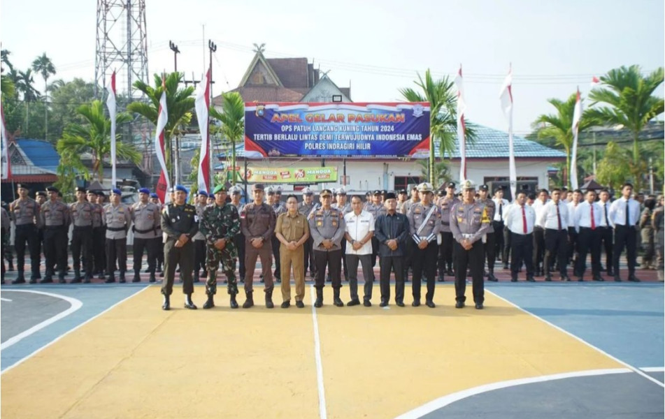 Apel Gelar Pasukan Operasi Patuh Lancang Kuning 2024 yang mengangkat tema "Tertib Berlalu Berlalu Lintas Demi terwujudnya Indonesia Emas" ini dipimpin oleh Wakapolres Inhil, Kompol Indra Lukman.