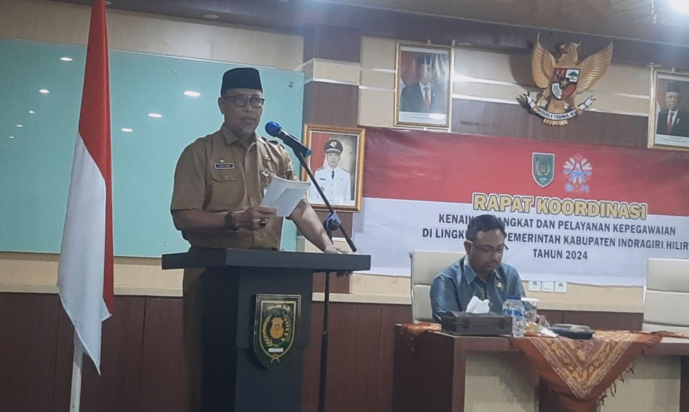 SIBERONE.COM – Penjabat (Pj) Bupati Indragiri Hilir, Erisman Yahya, yang diwakili oleh Asisten Satu Sekretariat Daerah (Setda) Inhil, H. Tantawi Jauhari, menghadiri rapat koordinasi mengenai kenaikan pangkat Pegawai Negeri Sipil (PNS) di lingkungan Pemerintah Kabupaten Indragiri Hilir. Rapat tersebut berlangsung di Aula Lantai 5 Kantor Bupati Tembilahan, pada Senin, 19 Agustus 2024.
