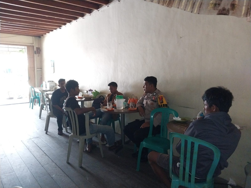 Sambil berbincang santai Kapolsek Tembilahan Hulu AKP Ricki Marzuki, SH diwakili Bhabinkamtibmas Desa Sungai Intan, BRIGADIR Ilham Dinata Syaputra, SH mengajak masyarakat bekerjasama menjaga keamanan dan ketertiban menjelang Pilkada dilaksanakan.