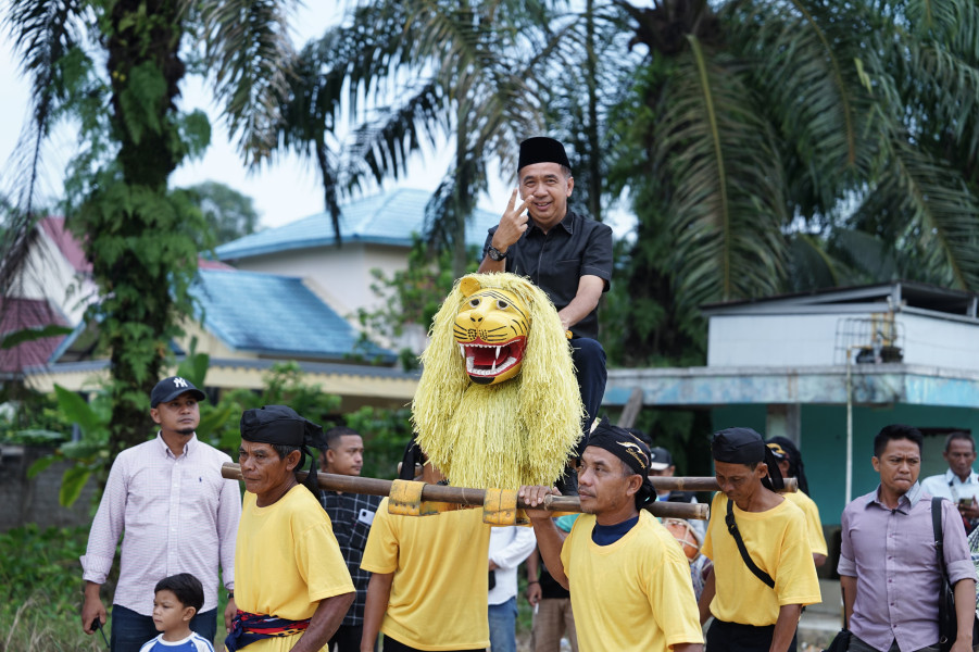 Bang Ferry sapaan akrab Ferryandi disambut antusias oleh masyarakat yang sudah menunggunya sejak pagi itu juga. Calon Bupati nomor urut 2 itu terlihat sumringah keliling kampung, di atas Singa Depok, diiringi musik tradisional gendang hingga gong. Patung singa yang dipanggul ini, sepertinya memang dikeluarkan khusus untuk mengarak Ferryandi.