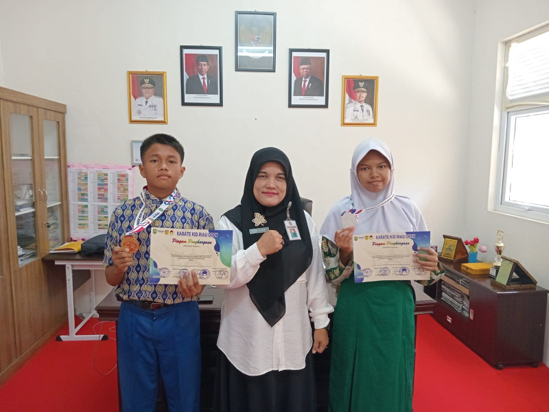 Plt Kepala SMPN 7 Pekanbaru, Yuni Safitri SPd mengapresiasi prestasi gemilang yang diraih siswanya. Kedua siswa berprestasi itu adalah Perdana Reyfael Siregar Kelas VII-3 peraih Medali Emas kategori Komite dan Anindya Shifa Rufina Kelas IX-3 peraih Medali Perak kategori Kata.