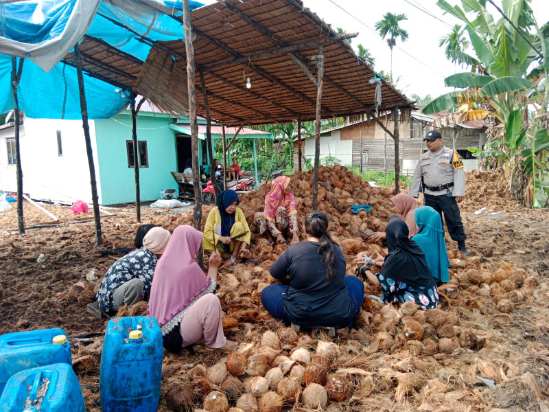 Pada hari Selasa (22/10/2024) sekitar pukul 08.30 WIB, Aipda Dedi Haryanto Laiya bertemu dengan ibu-ibu warga Kelurahan Tembilahan Barat yang sedang membelah kelapa di Jalan Gerilya Parit 1, RT 002 RW 001. Dalam kesempatan tersebut, Aipda Dedi menyampaikan sejumlah himbauan terkait menjaga situasi keamanan dan ketertiban masyarakat (harkamtibmas) selama berlangsungnya tahapan Pilgubri dan Pilbub Inhil.