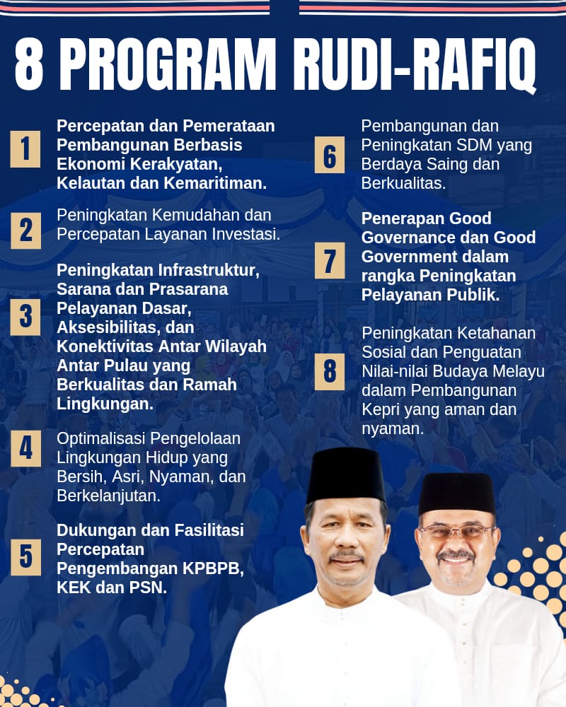 Wujudkan Pemerataan Pembangunan dan Ekonomi Kepri, Berikut 8 Program Rudi-Rafiq