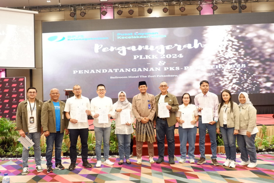 SIBERONE.COM - BPJS Ketenagakerjaan Kantor Cabang (Kacab) Pekanbaru Kota menggelar Penganugerahan Pusat Layanan Kecelakaan Kerja (PLKK) Tahun 2024 dan Penandatanganan Ikatan Kerja Sama (IKS) PLKK Tahun 2025, Jumat (20/12/2024) di Ballroom Hotel The Zuri Pekanbaru.