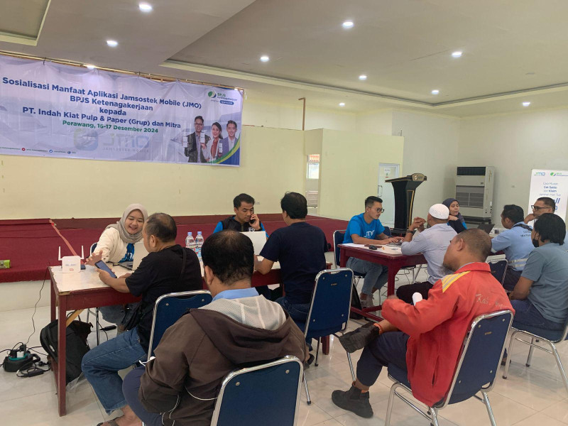 SIBERONE.COM - BJPS Ketenagakerjaan terus gencar sosialisasikan kemudahan pada aplikasi Jamsostek Mobile (JMO) kepada seluruh karyawan di Aula Bunut PT Indah Kiat Pulp & Paper (Group), Selasa (17/12/2024). Kegiatan tersebut bertujuan untuk memberikan edukasi kepada para pekerja khususnya karyawan PT Indah Kiat Pulp & Paper (Group) dan kemudahan-kemudahan pada fitur aplikasi JMO.