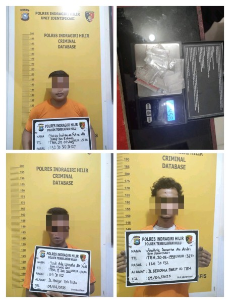 Pada Selasa malam, 8 April 2025 sekitar pukul 23.00 WIB, Kanit Reskrim Polsek Tembilahan Hulu Aipda Fitrianto menerima laporan masyarakat terkait transaksi narkotika yang dilakukan oleh dua pria, Andhrie Junarsa alias Andre (32) dan Wahyono alias Yono (43). Berdasarkan informasi tersebut, tim langsung bergerak ke lokasi dan berhasil mengamankan kedua pelaku di Jl. Samarinda, disertai dengan barang bukti berupa 2 paket sabu seberat 2,21 gram dan dua unit handphone.
