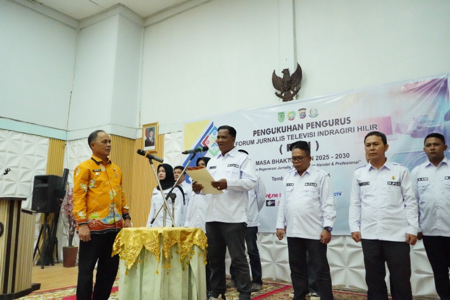 SIBERONE.COM – Bupati Indragiri Hilir, Herman, secara resmi mengukuhkan kepengurusan Forum Jurnalis Televisi Indragiri Hilir (FJTI) untuk masa bakti 2025–2030. Prosesi pengukuhan digelar dalam sebuah acara resmi di salah satu aula hotel di Tembilahan, Kamis (15/5) pagi.