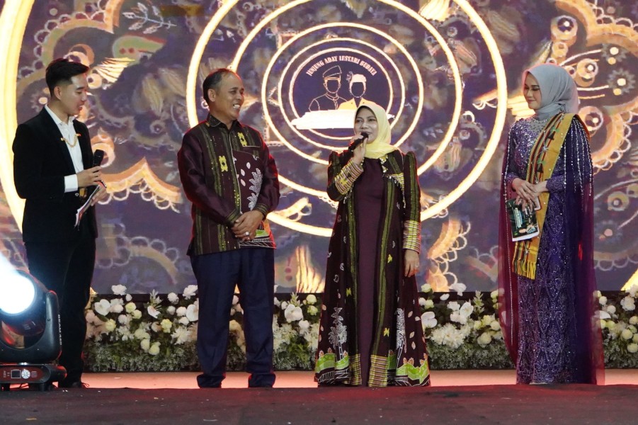 Selain terpilihnya Muthia Wulan Risyada sebagai Dara Inhil dan Diko Suwitra selaku Bujang Inhil 2025, yang tak kalah menarik perhatian penonton ialah peragaan yang ditampilkan Bupati Herman dan Ketua Dekranasda dengan mengenakan kain tenun dan batik khas Inhil.