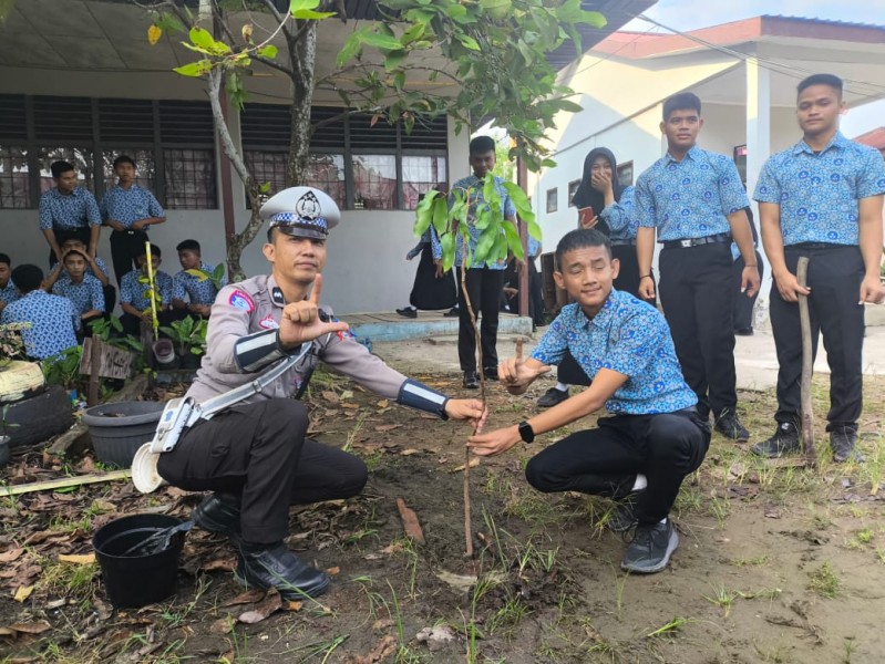 Polres Inhil Kolaborasikan Edukasi Tertib Lalu Lintas dan Gerakan Hijau di SMAN 1 Tembilahan Hulu