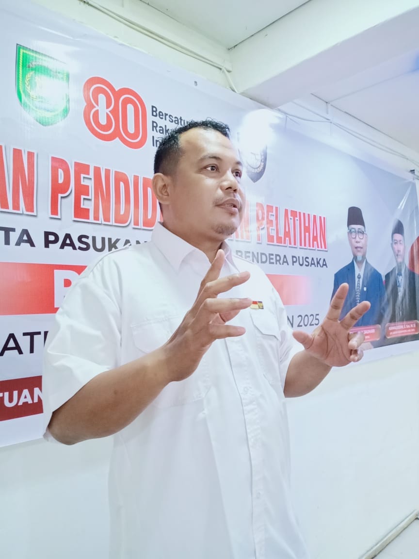 SIBERONE.COM – Ketua Purna Paskibraka Indonesia (PPI) Kabupaten Indragiri Hilir (Inhil), Zainal Arifin Hussein, memberikan pembekalan kepada para calon anggota Pasukan Pengibar Bendera Pusaka (Paskibraka) Kabupaten Inhil Tahun 2025. Kegiatan berlangsung di aula Tembilahan Pratama dan dihadiri pengasuh, pembina, serta pengurus PPI Inhil.