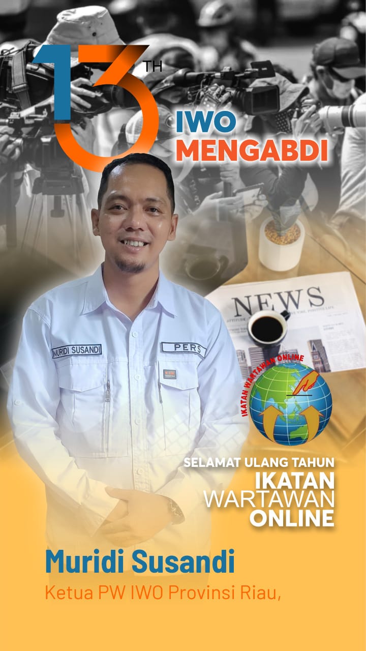 SIBERONE.COM — Ikatan Wartawan Online (IWO) genap berusia 13 tahun pada 9 Agustus ini. Dalam momentum peringatan hari jadi organisasi yang mewadahi para jurnalis media daring ini, Ketua Pengurus Wilayah IWO Provinsi Riau, Muridi Susandi, menyampaikan pesan reflektif dan menginspirasi bagi seluruh anggota IWO, khususnya yang berada di 12 kabupaten/kota di Provinsi Riau.