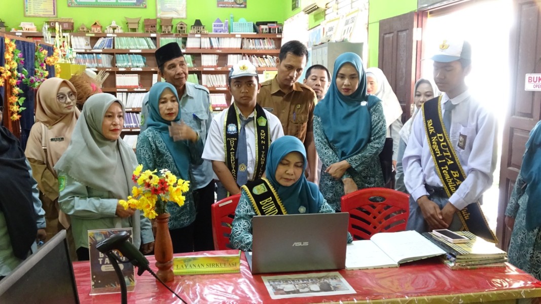 Bunda Literasi Inhil Tinjau Perpustakaan Suntung Ardi SMK N 1 Tembilahan Hulu