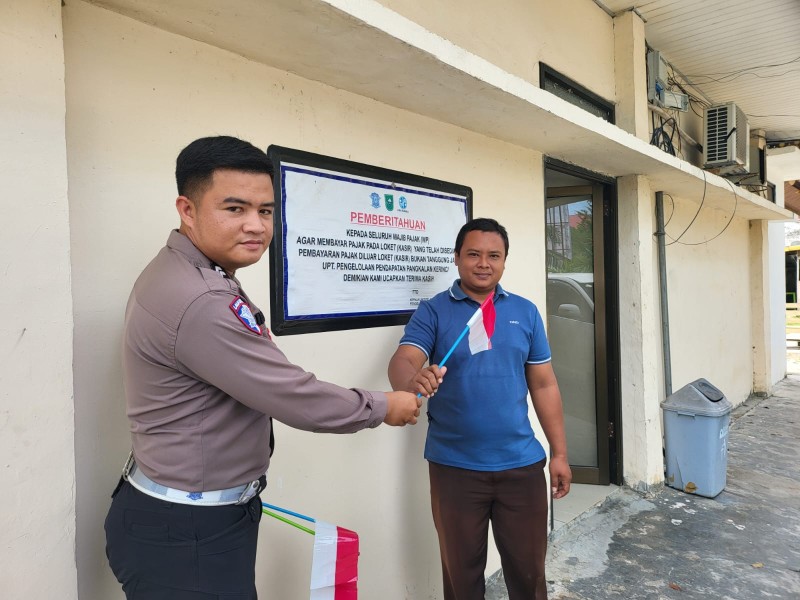 Selain itu,personel Satlantas Polres Pelalawan juga membagi-bagikan bendera merah putih dengan berbagai ukuran secara gratis kepada wajib pajak.Pembagian bendera ini mendapat sambutan positif dari masyarakat. Banyak pengendara yang langsung memasang bendera di kendaraannya, sebagai bentuk partisipasi dalam menyemarakkan HUT RI ke-80 Tahun.