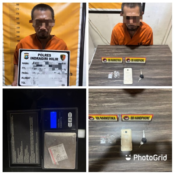 Penangkapan dilakukan pada Sabtu (16/8/2025) sekitar pukul 14.10 WIB di Jalan Baharuddin Yusuf, Kelurahan Sungai Beringin, Kecamatan Tembilahan. Dari tangan tersangka, polisi mengamankan barang bukti berupa satu paket plastik bening berisi kristal putih diduga shabu seberat 0,48 gram, satu unit sepeda motor Honda Beat warna hijau dengan nomor polisi BM 5038 GAA, serta satu unit ponsel Samsung putih beserta kartu SIM yang digunakan untuk transaksi.