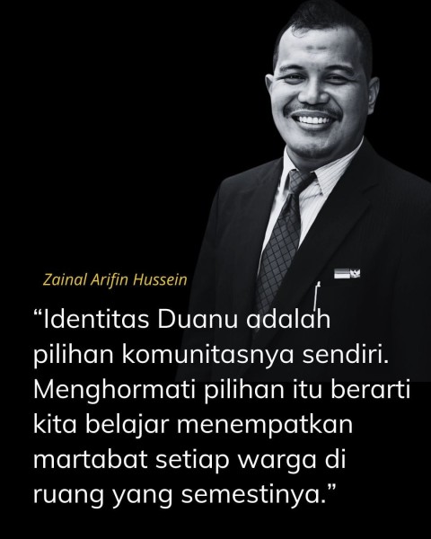 Zainal menilai bahwa seorang pemimpin yang baik mestinya menghargai keragaman identitas sebagai kekuatan persatuan. Menghormati pengakuan komunitas Duanu, menurutnya, bukan hanya etika, tetapi juga cara membangun solidaritas sosial.