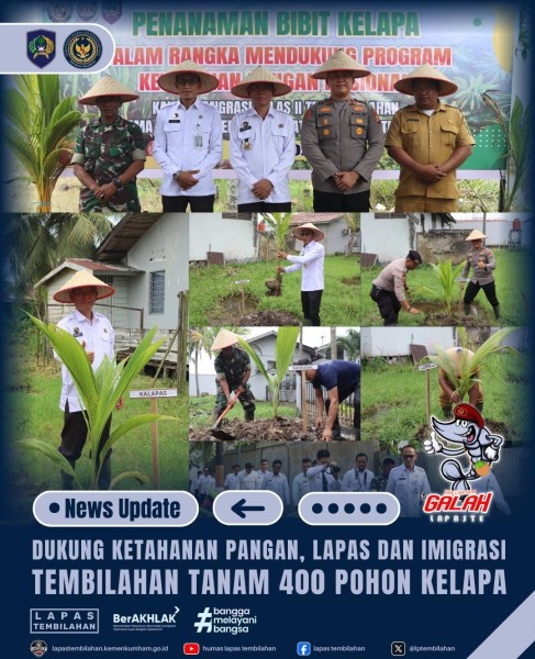 Kepala Lapas Kelas IIA Tembilahan, Prayitno, mengatakan bahwa kegiatan ini merupakan bagian dari gerakan serentak penanaman 26.000 bibit pohon kelapa di seluruh lapas dan rumah tahanan se-Indonesia. Penanaman pusat dipusatkan di Nusakambangan, Jawa Tengah, dan dilaksanakan secara serentak di seluruh wilayah Indonesia.