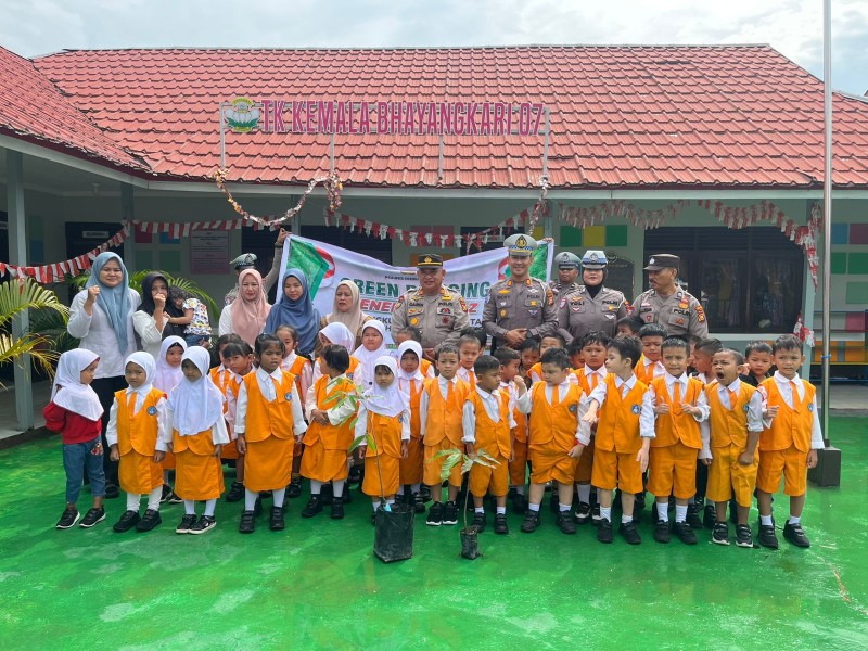 SIBERONE.COM - Polres Indragiri Hilir melaksanakan Program Kapolda Riau bertajuk Green Policing dengan mengajak anak-anak sejak usia dini untuk mencintai dan menjaga kelestarian lingkungan hidup. Kegiatan edukasi dan penanaman pohon secara simbolis ini digelar di Taman Kanak-Kanak (TK) Bhayangkari, Kecamatan Tembilahan Hulu, Kabupaten Indragiri Hilir, pada Senin pagi, pukul 09.30 WIB.