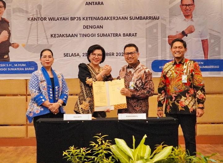 Penandatanganan kerjasama ini dilakukan oleh Kepala Kejaksaan Tinggi (Kajati) Sumatera Barat, Yuni Daru Winarsih dengan  Kepala Kantor Wilayah BPJS Ketenagakerjaan Sumbarriau Kepri,  Henky Rhosidien yang dilaksanakan di Hotel Pangeran Kota Padang, Selasa (23/09/2025).