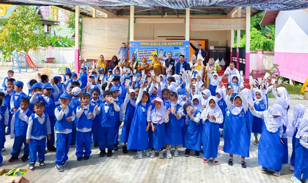 SIBERONE.COM – Bentuk kepedulian terhadap dunia pendidikan dan kesehatan anak, Serikat Media Siber Indonesia (SMSI) Kabupaten Indragiri Hilir (Inhil) kembali melaksanakan program “SMSI Goes To School” dengan membagikan susu Gizi Nasional (Ginas) di TK Negeri Pembina Tembilahan, Selasa (21/10/2025) pagi.