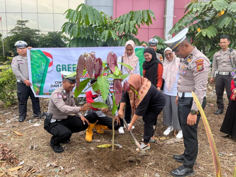 Dalam kegiatan ini, jajaran Satlantas menanam 20 bibit pohon sirsak, mangga, dan matoa di lingkungan Dinas Perpustakaan. Selain itu, petugas juga memberikan edukasi kepada pegawai agar lebih peduli terhadap kelestarian lingkungan dan pentingnya penghijauan di area publik.