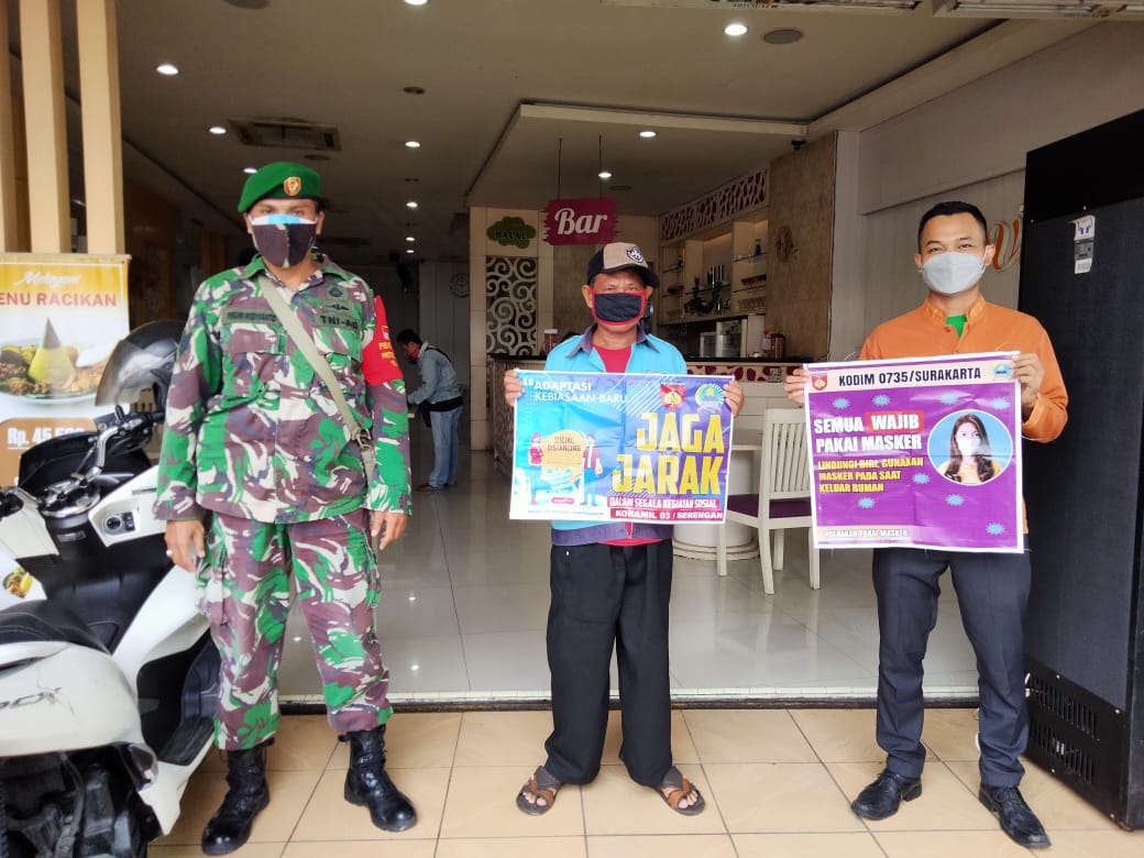 Senin (22/02/2021) Babinsa Kelurahan Kratonan Koramil 03/Serengan Kodim 0735/Surakarta Sersan mayor Yudi Widianto melaksanakan pengecekan tentang penerapan Pemberlakuan Pembatasan Kegiatan Masyarakat (PPKM) yang bertempat rumah makan Violet di Jalan Gatot Subroto no.285 Kratonan kelurahaan kratonan kecamatan Serengan.
