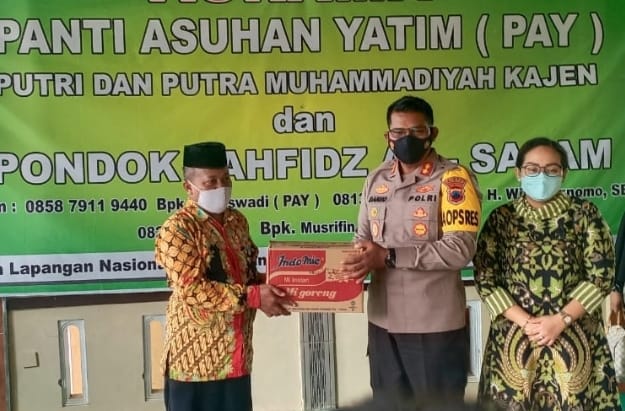 SIBERONE.COM - Momen keakraban tercipta saat Kapolres Pekalongan AKBP Darno, S.H., S.I.K., bersama Pejabat Utama (PJU) Polres menyambangi Panti Asuhan Yatim Muhammadiyah Kelurahan Kajen Kecamatan Kajen Kabupaten Pekalongan. Tidak hanya memberikan bantuan berupa uang, nasi kotak, makanan ringan dan sembako, Kapolres Pekalongan juga memberi motivasi dan edukasi terhadap anak-anak penghuni panti asuhan tersebut.