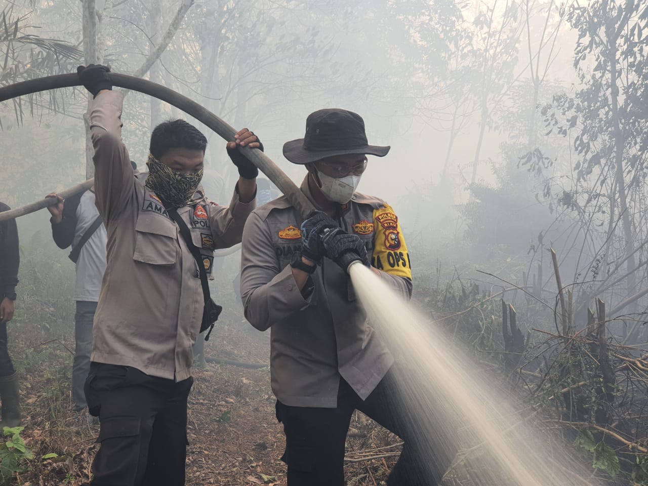 Dua Hari Kapolres Inhil Pimpin Pemadaman Karlahut di Kecamatan Kempas