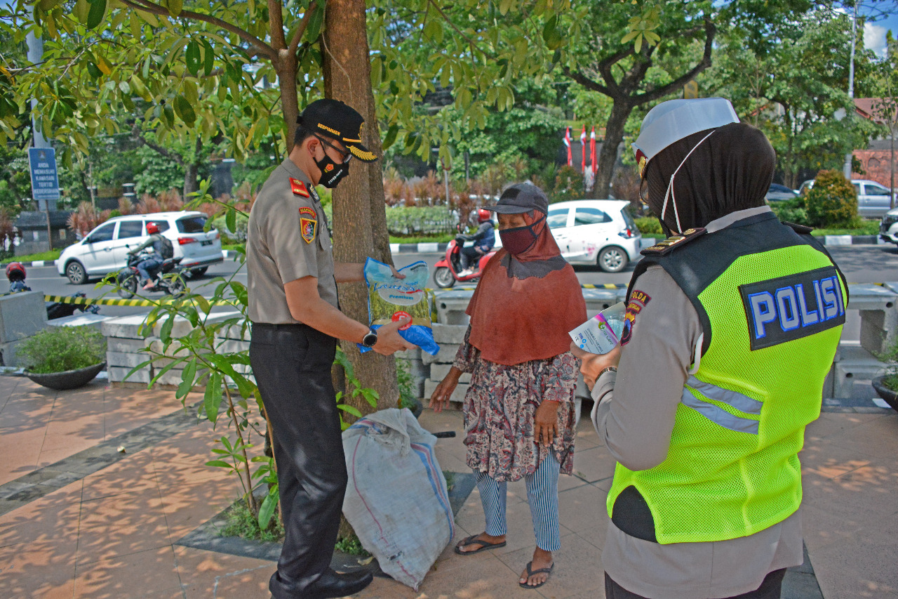 SIBERONE.COM - Usai membagikan masker dan memberikan himbauan kepada masyarakat tentang keselamatan lalu lintas candi (OKLC) 2021, Kasubdit Gakkum Ditlantas Polda Jateng bersama Serdik Sespimmen Polri Dikreg ke- 61, Serdik Heru Budiharto, SIK, MIK, Senin (19/4/21), membagikan beras dan sembako kepada masyarakat yang berada di jalan kartini.