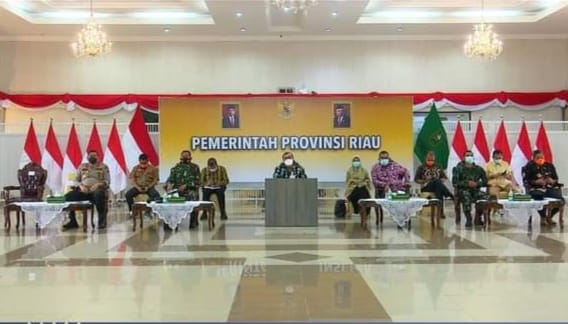 Syamsuar dalam paparannya menyampaikan bahwa saat ini di Provinsi Riau mengalami peningkatan kasus terkonfirmasi Covid-19 untuk mengatasi peningatan tersebut maka provinsi Riau telah mempersiapkan PPKM Mikro di seluruh Kabupaten/Kota.