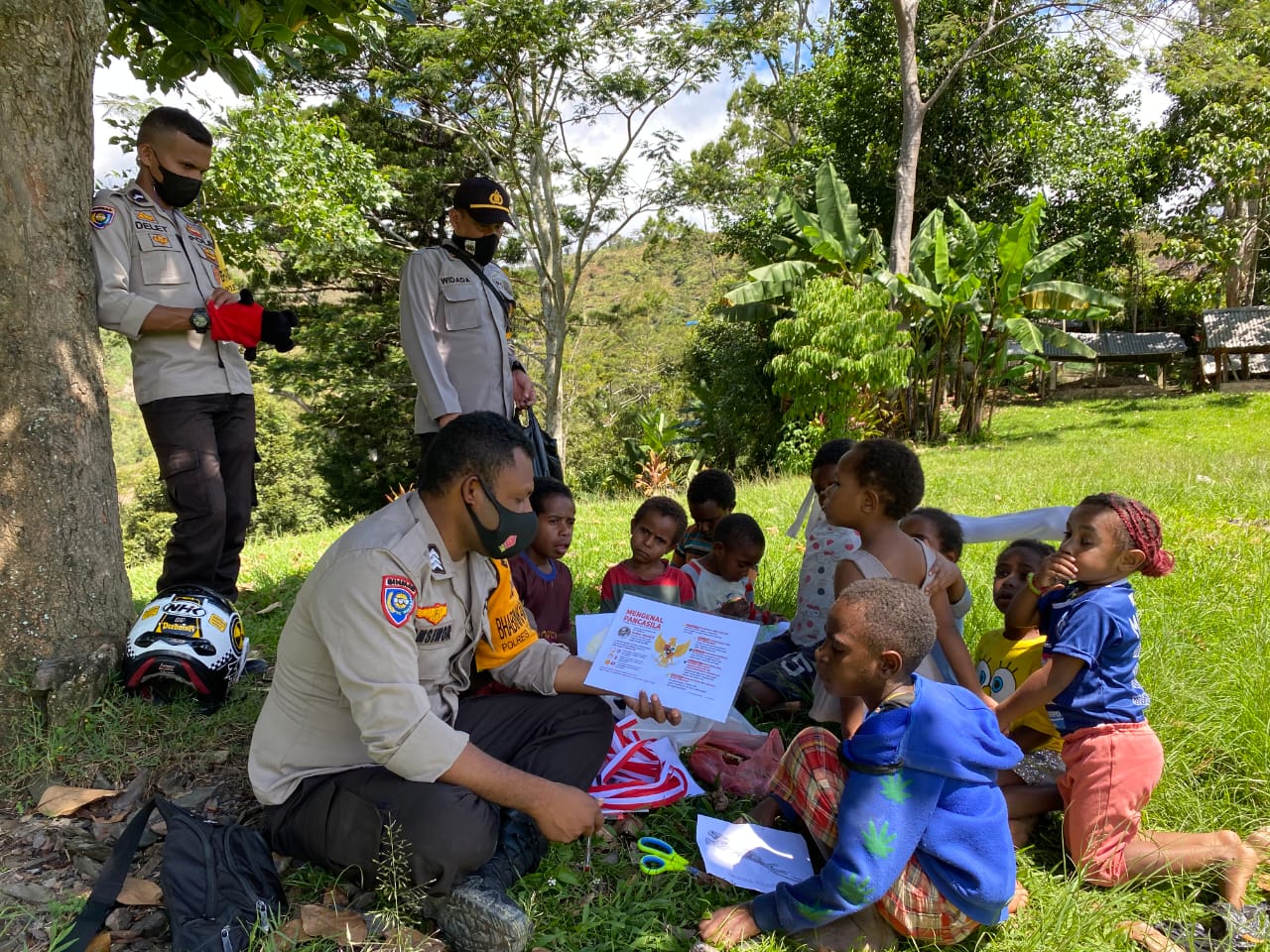 SIBERONE.COM - Lakukan Pi ajar kepada anak-anak tentang pendididikan dan kebangsaan, bersama Bhabinkamtibmas Polres Tolikara yang dipimpin Kasat Binmas Polres Tolikara Iptu Widada yang bertempat di distrik Karubaga Kab.Tolikara. Sabtu (29/05).