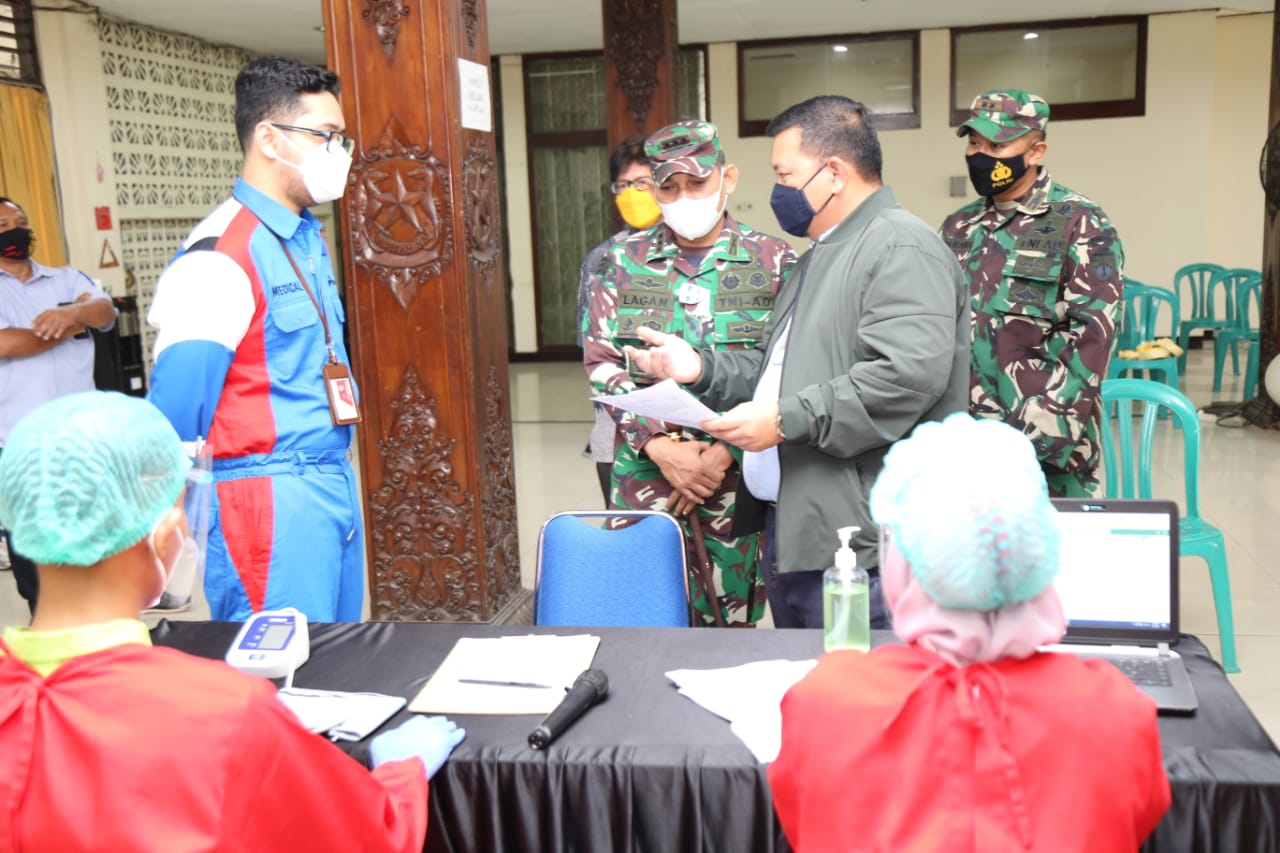 SIBERONE.COM - Dalam rangka mengecek kesiapan kegiatan serbuan vaksinasi Covid-19 di wilayah Kabupaten Cilacap, Komandan Korem 071 Wijayakusuma Kolonel Inf Dwi Lagan Safrudin, S.I.P dan Komandan Kodim 0703 Cilacap Letkol Inf Andi Afandi, S.I.P melaksanakan peninjauan lokasi vaksinasi di Gedung Patra Graha Convention Hall, Pertamina RU IV Cilacap Jl. M.T Haryono No.77, Lomanis, Kecamatan Cilacap Tengah, Kabupaten Cilacap, Rabu (2/6).