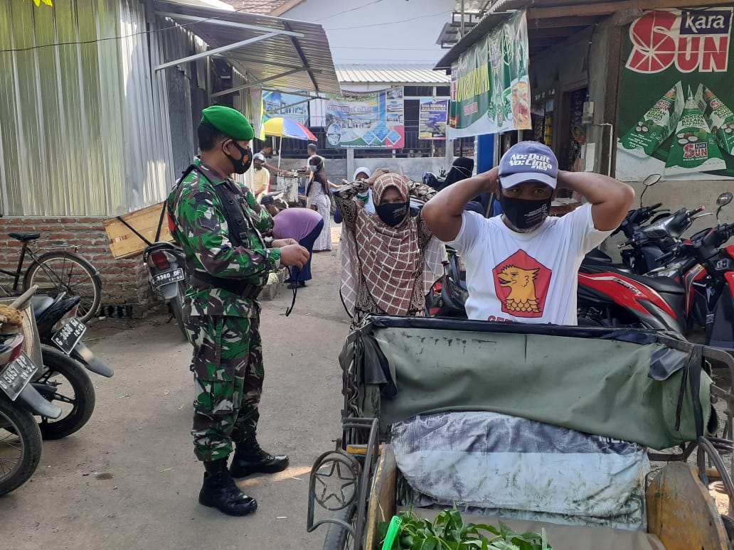 SIBERONE.COM – Operasi yustisi penegakan protokol kesehatan gencar dilakukan menyusul melonjaknya jumlah kasus Covid-19 di Kabupaten Tegal. Operasi yang melibatkan personel Tim Siaga Kodim 0712/Tegal yang di pimpin langsung Danramil 04/ Warujeja Kapten Arh Suhendra dengan sasaran pasar Pepedan desa Pepedan Kecamatan Dukuhturi Kabupaten Tegal. Jumat (4/06/21)
