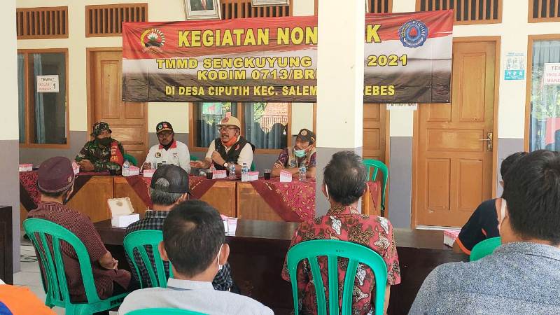 Pelaksana Lapangan Bidang Pencegahan dan Kesiapsiagaan BPBD Kabupaten Brebes, Lukman, SH selaku pemateri mengatakan, sosialisasi kebencanaan sebagai salah satu materi di non fisik TMMD Sengkuyung Kodim 0713 Brebes penting diberikan ke warga Ciputih karena letak geografis wilayah Kecamatan Salem adalah perbukitan sehingga berpotensi bahaya longsor.