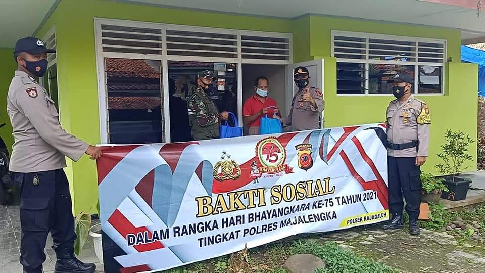 SIBERONE.COM - Polsek Rajagaluh Polres Majalengka bersama Koramil Dalam rangka menyambut hari Bhayangkara ke 75, Kapolsek Rajagaluh memberikan bingkisan pada para Purna Polri, Purna PNS Polri dan Warakawuri yang disalurkan melalui Polsek Rajagaluh,Rabu (30/6/2021).