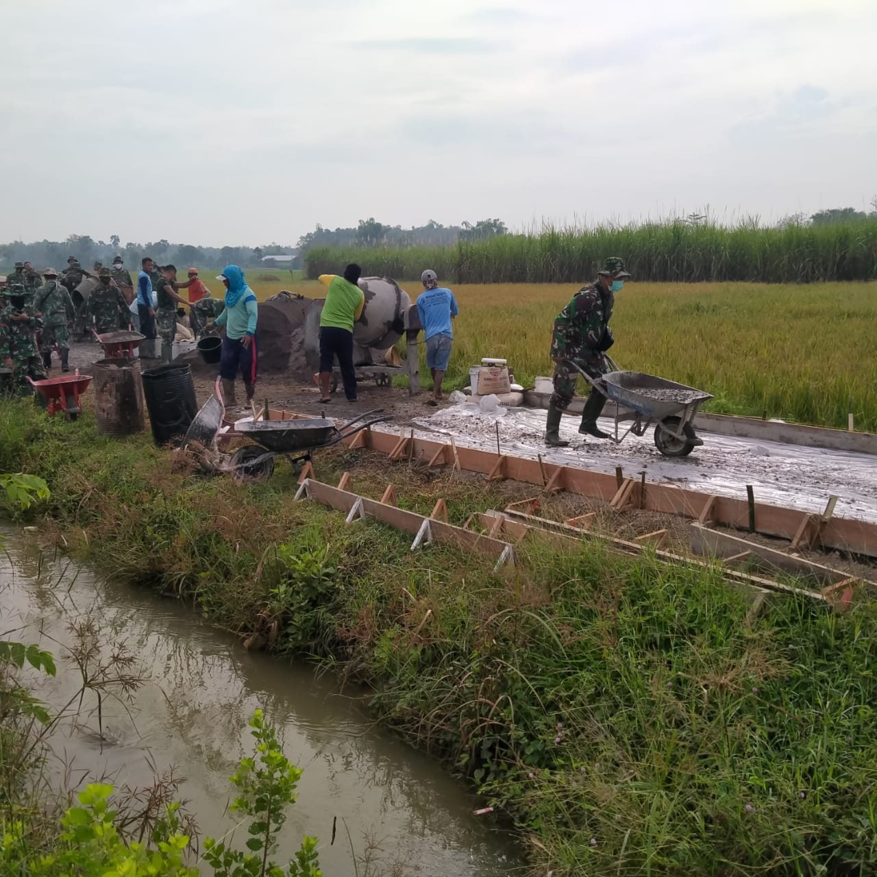 SIBERONE.COM – Pelaksanaan TNI Manunggal Membangun Desa (TMMD) Reguler ke-111 tahun 2021 di Desa Tamansari, Kecamatan Jaken, Kabupaten Pati hingga hari ini terus dikebut. Tanpa mengenal lelah, prajurit TNI bersama warga bahu membahu melakukan pengecoran jalan tembus penghubung dua desa yakni Desa Tamansari dan Desa Sumberarum sepanjang 1.450 x 3 m.