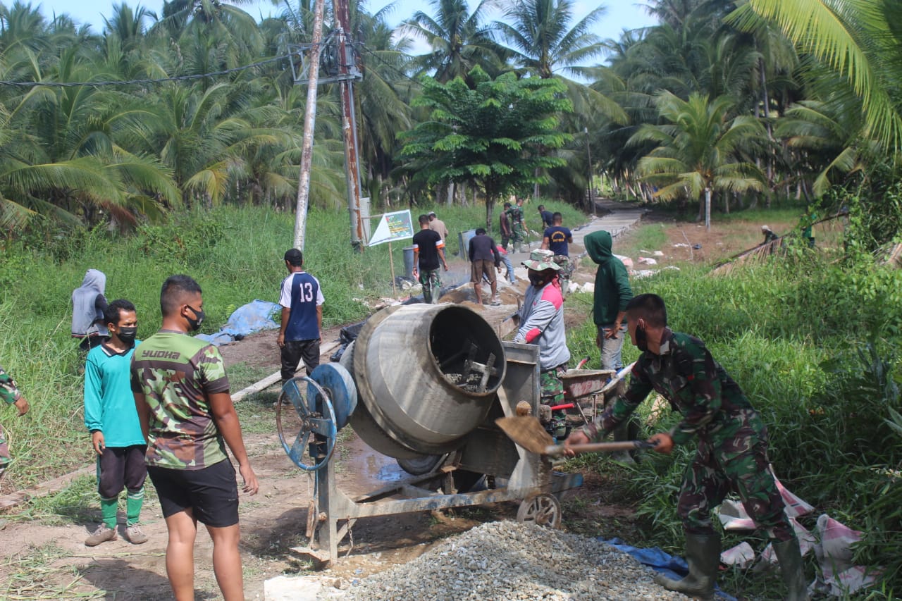 SIBERONE.COM - Proses demi proses, hari demi hari Satgas TMMD ke 111 Kodim 0314/lnhil berjuang sampai hari ini untuk membangun Desa bersama masyarakat di sasaran fisik semenisasi jalan penghubung Desa Terusan Beringin Jaya dengan Desa Teluk Buni