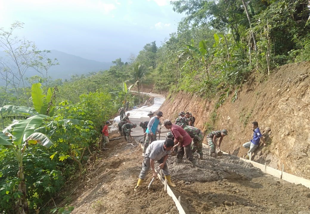 Pengecoran jalan sudah berjalan hampir H - 10, tetap saja warga antusias untuk membantu TNI yang sedang kerja membangun jalan. Padahal, beberapa diantara mereka juga ikut kerja di RTLH.