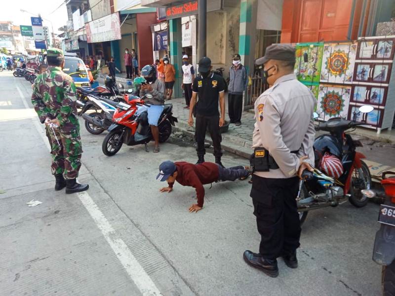 “Selain memberikan sanksi push up saat operasi yustisi, kita juga memberikan masker kepada pedagang, pengunjung pasar, dan pengguna jalan,” ujarnya.