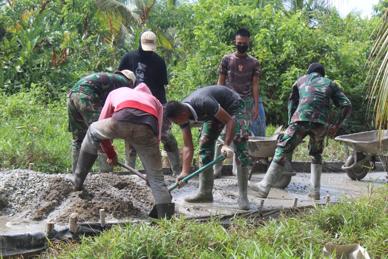 Usai Sholat Jum'at Satgas TMMD ke 111 Inhil Bersama Warga Kembali Laksanakan Semenisasi Jalan Yakub II