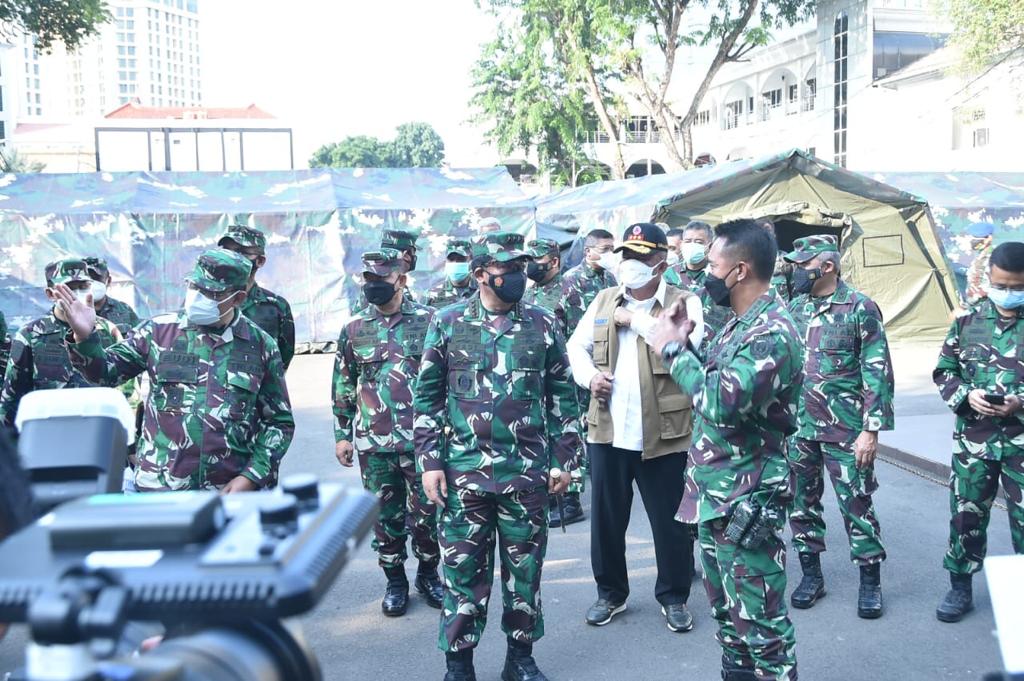 SIBERONE.COM - Dalam membantu program pemerintah untuk menekan lonjakan Covid-19 yang melanda dunia khususnya di Indonesia, TNI membantu dan menyiapkan Rumah Sakit Lapangan (Rumkitlap) dengan 770 tempat tidur sebagai sarana isolasi yang terpapar Covid-19 di Jakarta.