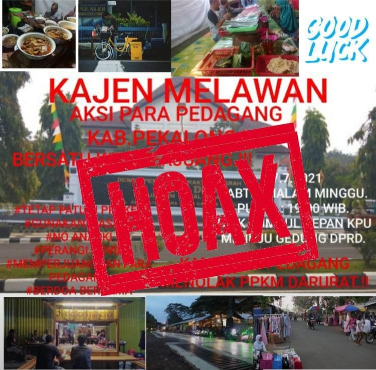 SIBERONE.COM - Beredar sebuah konten digital berisi seruan aksi penolakan Pemberlakuan Pembatasan Kegiatan Masyarakat (PPKM) Darurat di Kab.Pekalongan, Jawa Tengah. Secara garis besar, seruan itu berisi ajakan kepada para pedagang di wilayah Kab.Pekalongan terdampak untuk bergabung turun ke jalan menolak kebijakan PPKM Darurat.