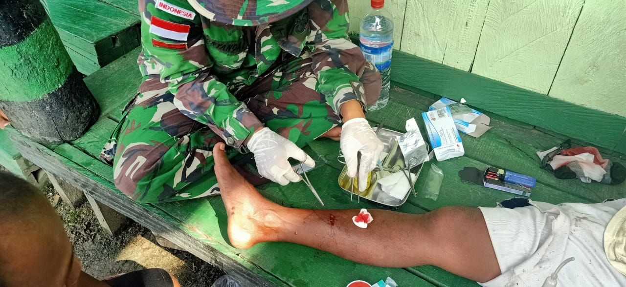 Akibat Terkena Lontaran Batu Kerikil, Satgas Pamtas Yonif 403/WP Bantu Warga Obati Luka Robek di Wilayah Perbatasan RI-PNG