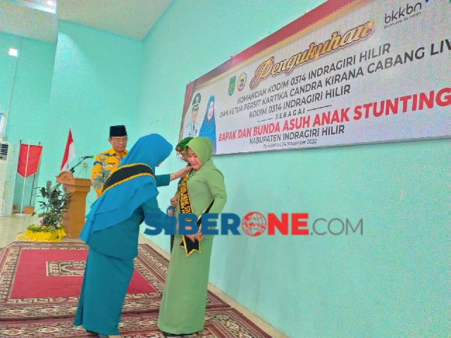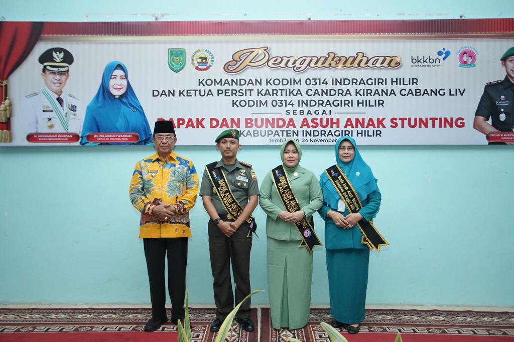 SIBERONE.COM - Pemerintah Kabupaten Indragiri Hilir (Pemkab Inhil) melalui Dinas Pengendalian Penduduk dan Keluarga Berencana Pemberdayaan Perempuan dan Perlindungan Anak (DP2KBP3A) secara resmi mengukuhkan Komandan Kodim 0314 Inhil dan Ketua Persit Kartika Chandra Kirana Cabang LIV sebagai bapak dan Bunda Asuh Anak Stunting Kabupaten Inhil.