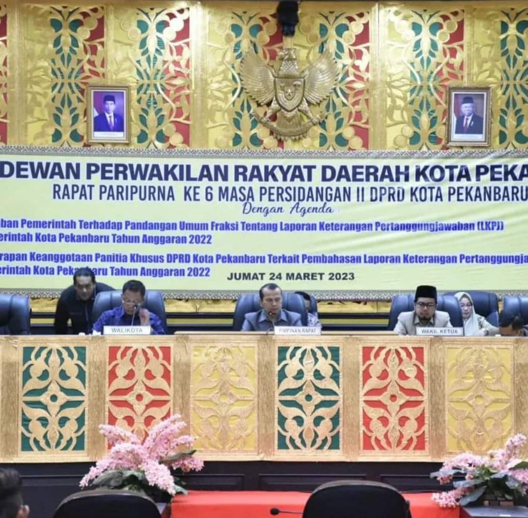 SIBERONE.COM - DPRD Pekanbaru menggelar Rapat Paripurna Jawaban Pemerintah Tentang Pandangan Fraksi, terkait LKPj Wali Kota Pekanbaru tahun 2022, Jumat (24/3/2023) di ruang Paripurna DPRD.