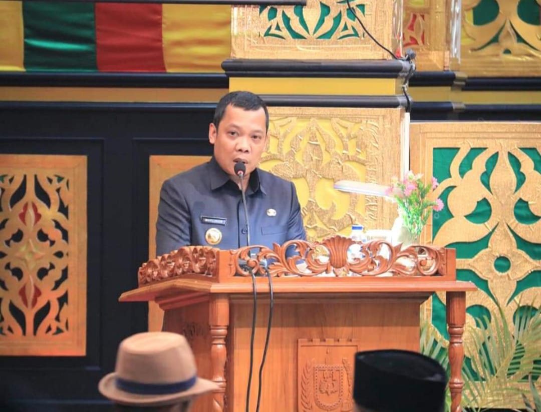 Pj Wali Kota Pekanbaru Muflihun membacakan Laporan LKPJ 2022.