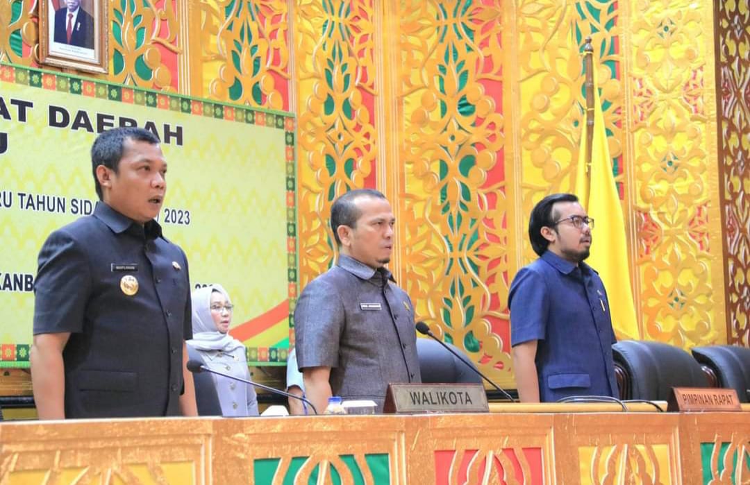Pimpinan DPRD Pekanbaru dan Pj Wali Kota Pekanbaru menyanyikan lagu Indonesia Raya.